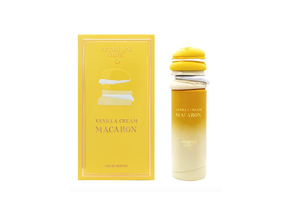 Arabiyat Sugar Vanilla Cream Macaron je parfémový dezert pre milovníkov jemných, sladkých a krémových vôní. Už v úvode Vás privíta nežný tón banánu, ktorý pôsobí sladko a prirodzene, bez prehnanej ovocnosti.