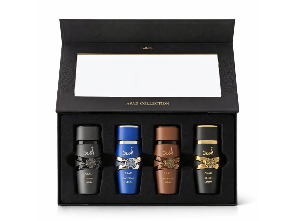 Objavte silu, charakter a rozmanitosť ikonickej línie Asad v exkluzívnom sete Lattafa Asad Collection. Tento elegantný balíček obsahuje štyri pánske parfémy v praktickom 25 ml balení – Asad, Asad Bourbon, Asad Zanzibar a Asad Elixir – ktoré spolu tvoria dokonalý výber pre každého muža, ktorý chce pôsobiť sebavedomo v každej situácii.