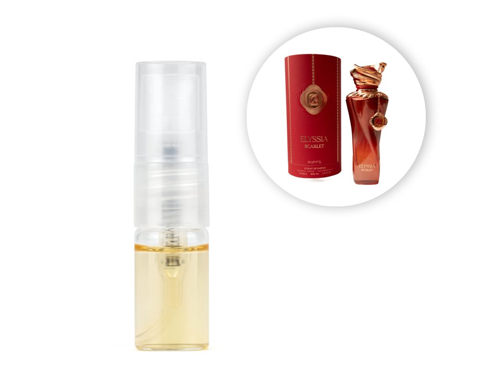 Riiffs Elyssia Scarlet je nádherne prepojená parfumová kompozícia pre sebavedomú ženu, ktorá miluje vône s charakterom a osobitým šarmom. Otváracie tóny červených bobúľ a maliny, v kombinácii so sviežou mandarínkou, prinášajú energiu, hravosť a prvotnú sladkosť, ktorá okamžite upúta zmysly.